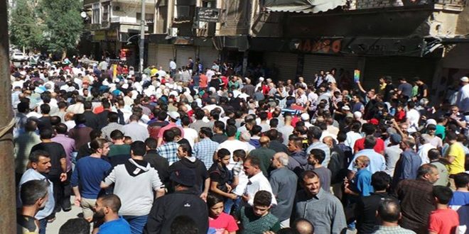 Miles de habitantes de la ciudad de Qudssaya en la provincia de Damasco-campo se manifestaron contra los grupos armados que se niegan a cumplir la reconciliación en dicha ciudad.