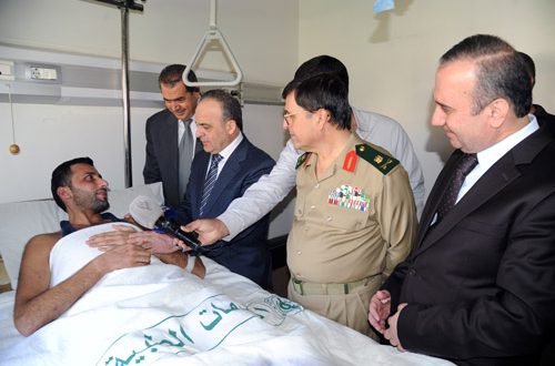 La delegación formada por los titulares de Hacienda, Administración Local y Medio Ambiente, y Educación Superior, preguntaron por la salud de los soldados sirios y ensalzaron su alta moral que está reforzando a Siria frente al terrorismo.
