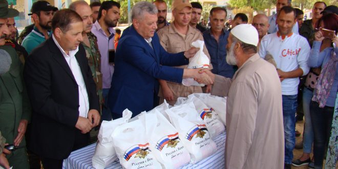 El gobernador de Swaida, Amer Ibrahim al-Eshi, quien participó en el acto de distribución agradeció al gobierno y el pueblo de Rusia por su apoyo al pueblo sirio que resiste la injusta guerra terrorista hostil.
