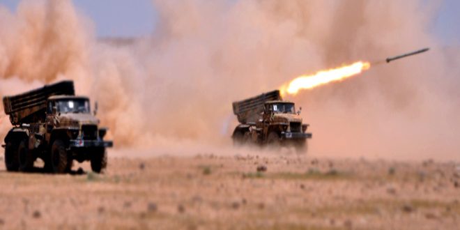 Una fuente militar informó que las fuerzas del Ejército atacaron intensivamente con cañonazos ejes de movimiento de los grupos terroristas desplegados en las inmediaciones de Yabbata al Khashab, Trunya, la colina de al Hamria, tras intentar infiltrarse para atacar puntos militares en las inmediaciones de las fincas de al Amal.