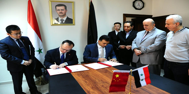 El presidente del Estamento de Creatividad, Imad al-Azeb, y el embajador de China en Damasco, Chi Chiangin, firmaron un memorando de entendimiento para reforzar la cooperación científico-juvenil entre los dos países y abrir horizontes ante los talentosos y beneficiarse de las experticias chinas en el ámbito de los proyectos de ingeniosidad en Siria.