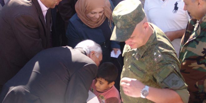 El acto de distribución se realizó en la escuela del mártir Mohamad Deif Allah, y contó con la presencia del gobernador de Deraa, Khaled al-Hanous, y el representante del Centro ruso para la Reconciliación.