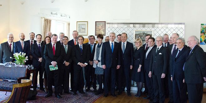 Moscú, SANA- El ministro de Asuntos Exteriores, Sergei Lavrov, abordó durante una reunión con los embajadores de los Estados miembros de la Unión Europea en Rusia, la crisis en Siria y las relaciones entre Rusia y la UE.