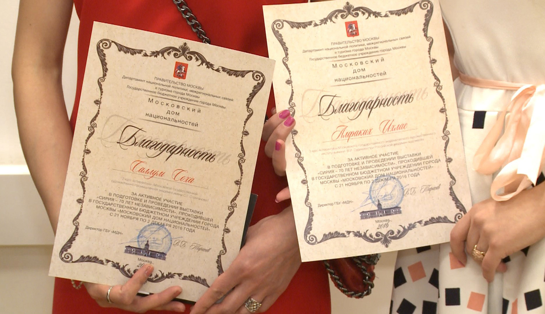 Durante la exposición, varios artistas recibieron premios por los organizadores del evento que tuvo por objetivo arrojar luz sobre la situación de Siria antes y después del terrorismo.