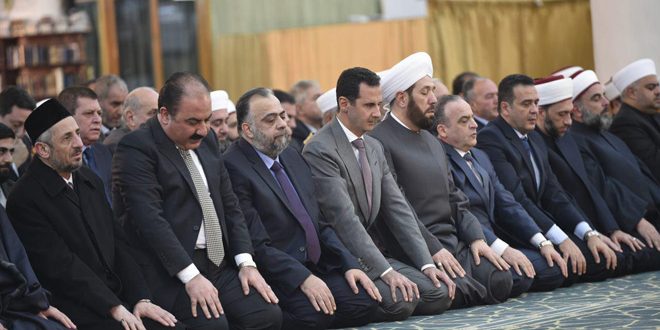 El Presidente Bashar Al-Assad ha participado en un acto religioso celebrado en la mezquita de Ibad Al-Rahman en Damasco, con motivo del aniversario del natalicio del profeta del Islam, Muhammad.