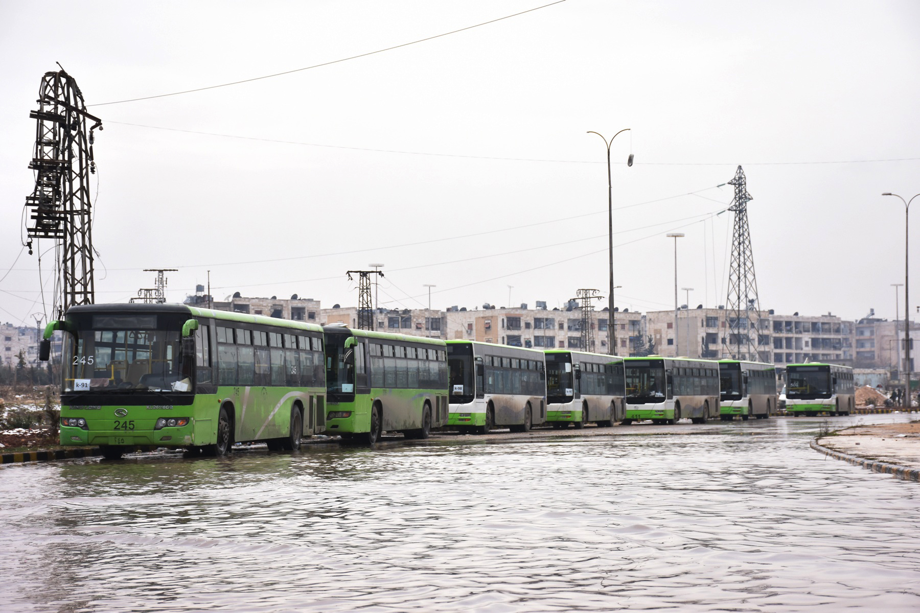 Llegaron, alrededor de 100 personas de las localidades de Kafareya y al-Foa a bordo de dos autobuses al cruce de Ramuseh en el sur de la ciudad de Alepo.