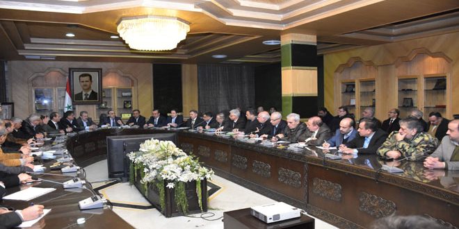 El primer ministro, Imad Khamis, se reunió con los miembros de la Oficina Ejecutiva del Consejo de Gobernación de Alepo, y con los directores de las instituciones y los departamentos de servicios y construcción.