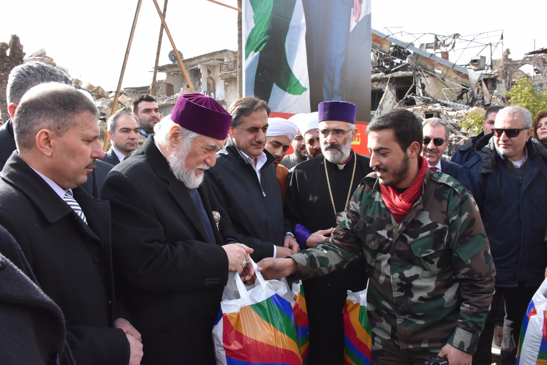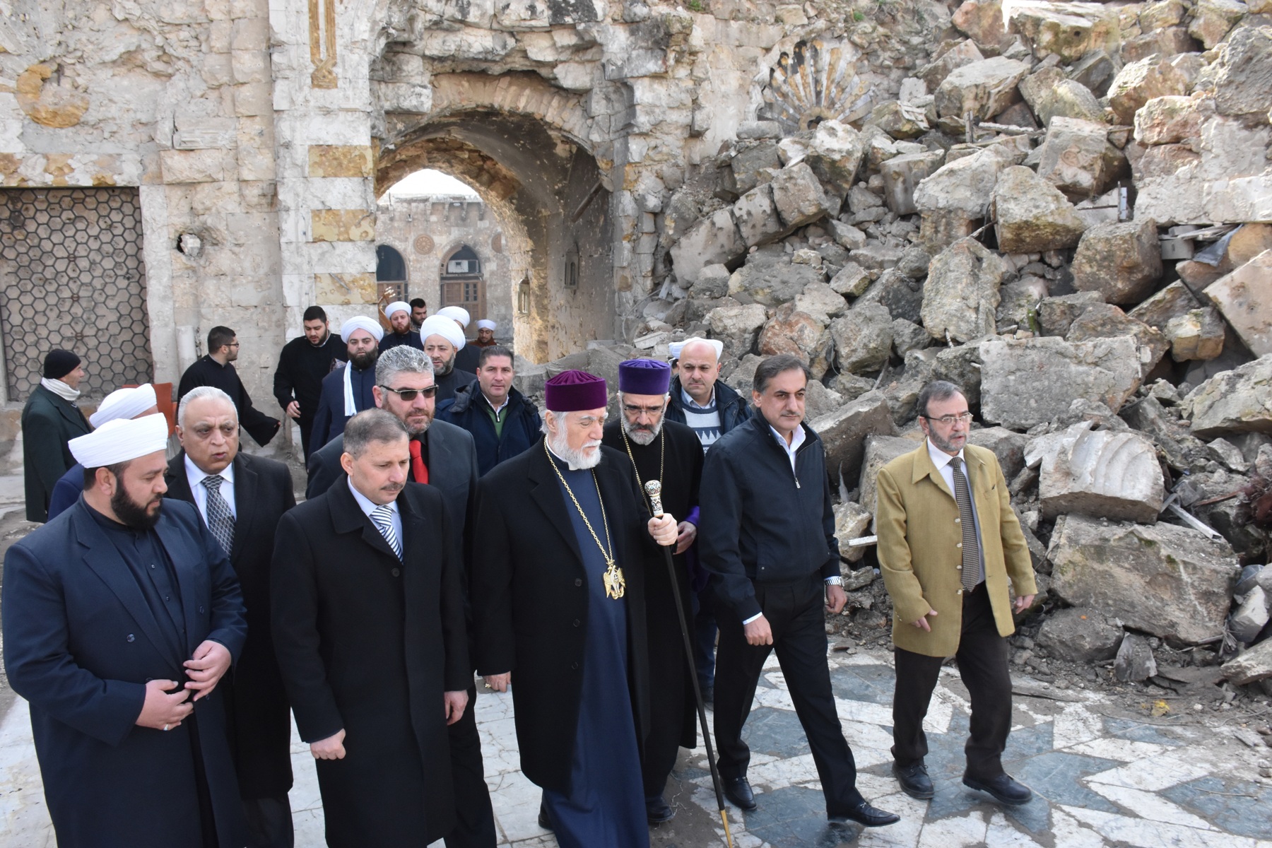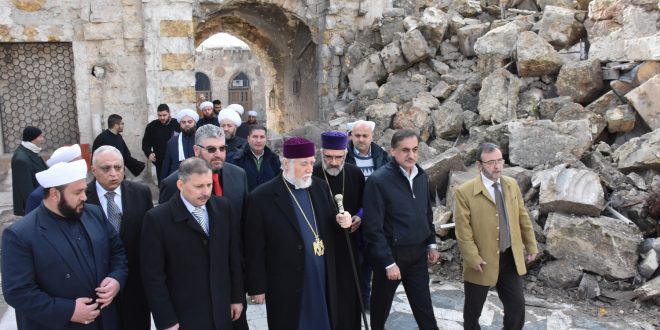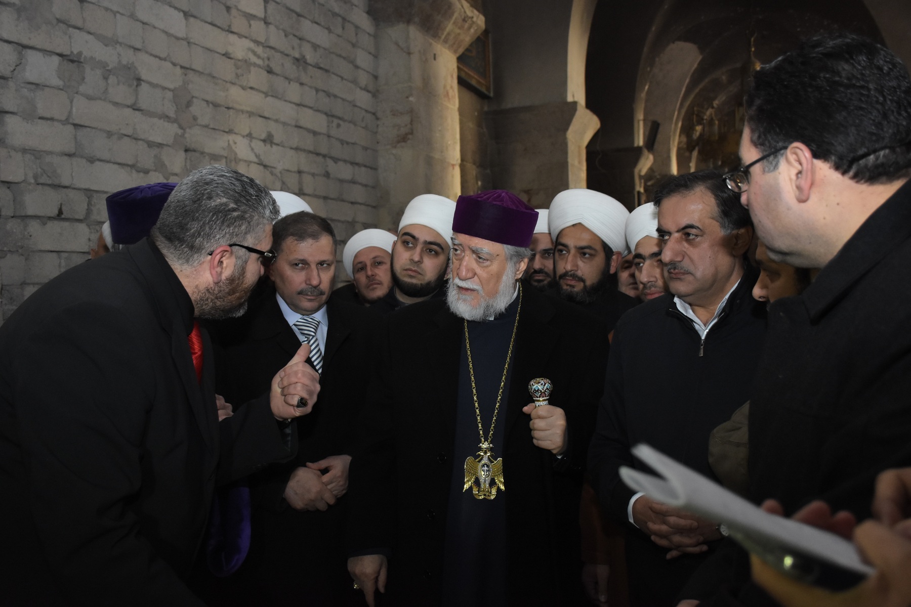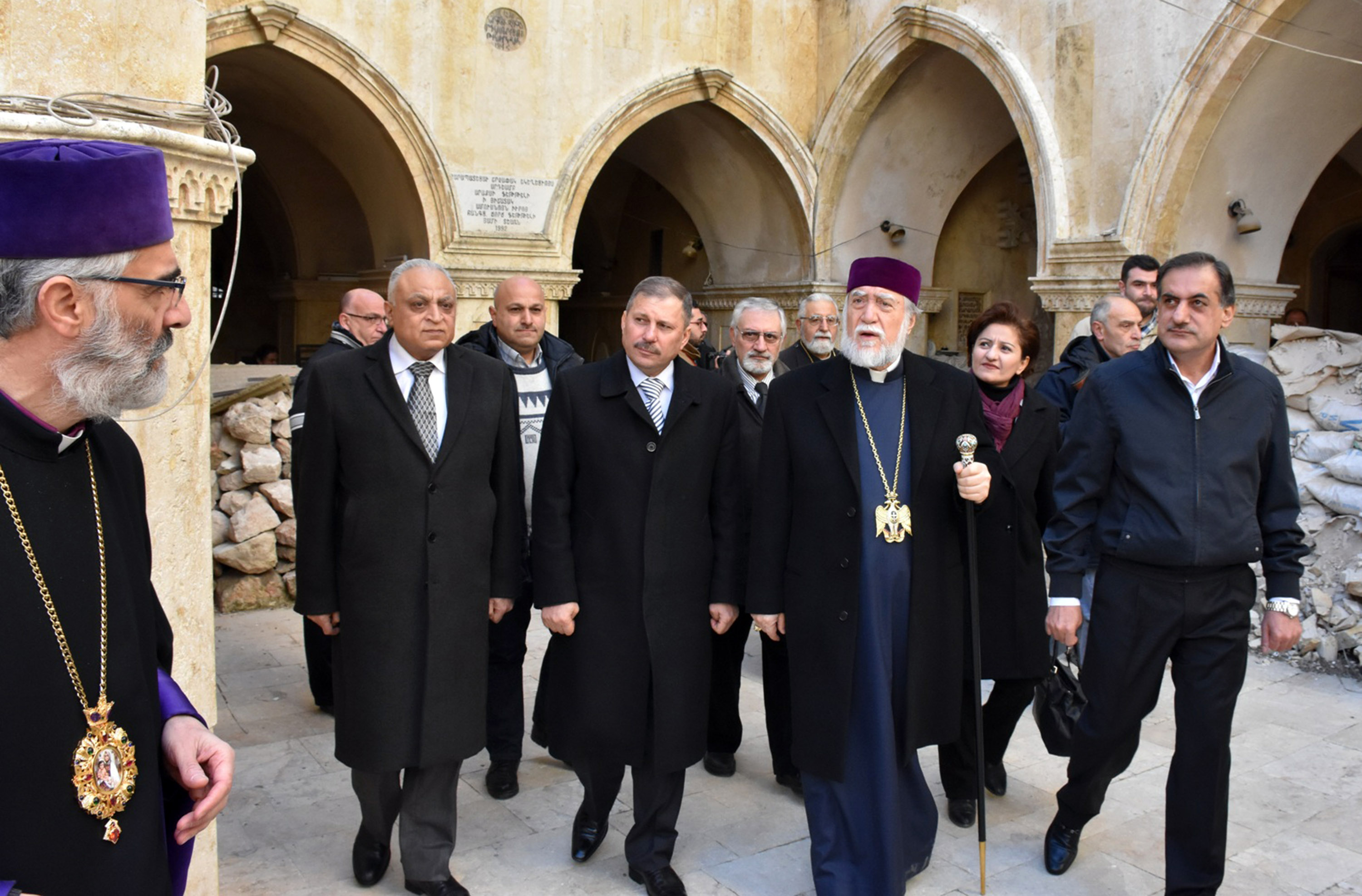 El Catolicós Aram, acompañado por el gobernador de Alepo, Hossien Diab, efectuó una gira en la iglesia de al-Arbain para los armenios ortodoxos, la Gran Mezquita de los Omeyas y el Castillo de Alepo el casco antiguo de Alepo.