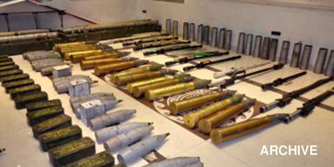 El reportero de SANA informó que las autoridades competentes realizaron un operativo en el campo norte de Hama con la ayuda de los lugareños, tras el cual se incautó un depósito lleno de grandes cantidades de armas y municiones.