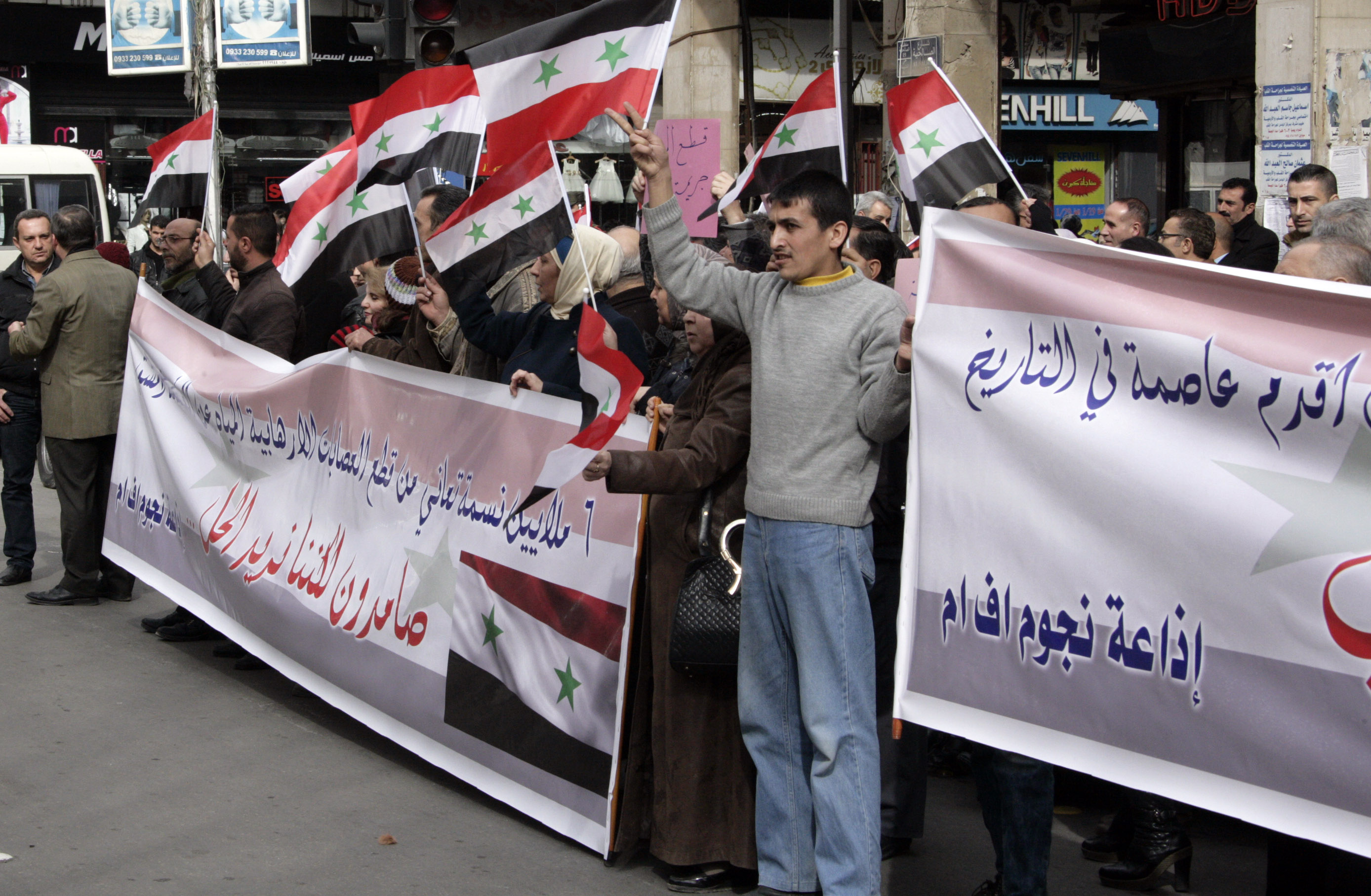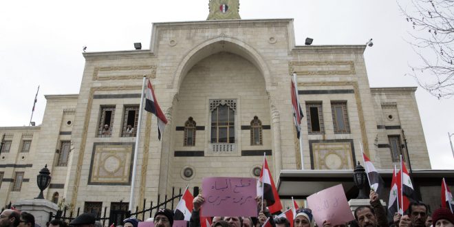 Los vecinos de la ciudad de Damasco protestaron este jueves contra el corte de agua potable por parte de los grupos terroristas.