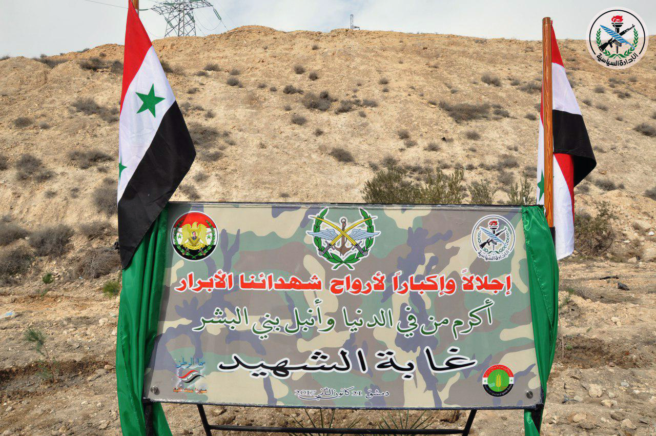 Un grupo de hijos e hijas de mártires sembraron este sábado 1000 árboles en una de las formaciones del ejército sirio en Damasco, donde el área reforestada ha sido bautizada “el Bosque del Mártir”