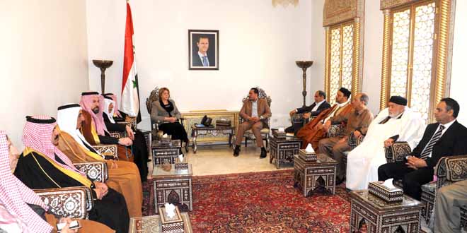 Dijo que la visita de la delegación tiene como objetivo fortalecer las relaciones entre los dos países y ratificar el apoyo de las tribus en Libia al pueblo sirio.