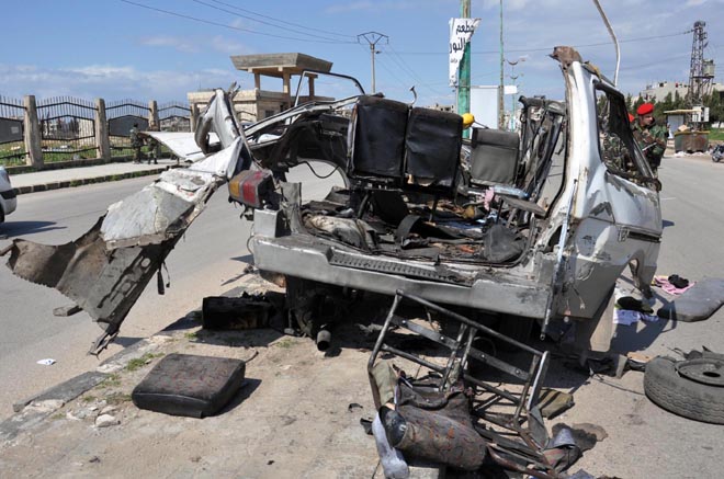 El corresponsal de SANA en Homs reportó que una carga explosiva colocada en un minibús estalló al ser activada a distancia en las inmediaciones del barrio Wadi al-Zahab dejando 6 heridos, algunos de ellos en estado de gravedad.