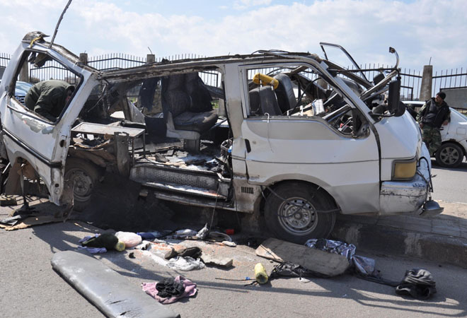 6 personas resultaron heridas en la explosión de un artefacto explosivo colocado por terroristas en un minibús de transporte urbano en el barrio de Wadi al-Zahab en la ciudad de Homs.