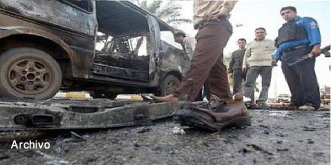 Una fuente local dijo que un artefacto explosivo colocado junto a la carretera se explotó al pasar un vehículo que transportaba un grupo de cazadores en la zona de al Dainyia, al este de Baquba, lo que causó la muerte de dos personas, y la herida de otras tres.