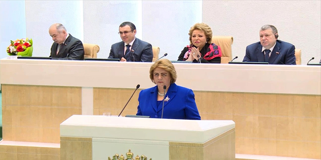 Agradeció a Rusia, tanto pueblo como gobierno, por su apoyo a Siria, y destacó que Siria y Rusia vencerán no cabe duda porque están defendiendo la legitimidad nacional e internacional.