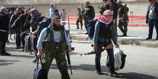 El corresponsal de SANA en Homs señaló que han salido del barrio Al-Waer 29 autobuses con 463 armados a abordo y 1185 miembros de sus familias con dirección rumo a Idleb bajo la supervisión del Creciente Rojo Árabe Sirio y las Fuerzas del Orden Interno y la Policía Militar Rusa acorde al programa preestablecido para la implementación del Acuerdo de Reconciliación.
