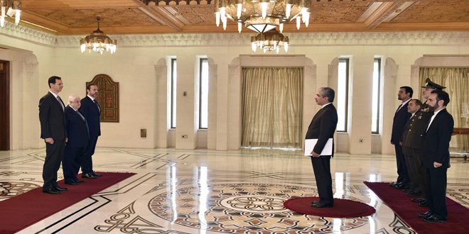 El presidente Bashar al-Assad, recibió este martes las cartas credenciales de Jawad Terkabadi, el nuevo embajador de la República Islámica de Irán en Siria.