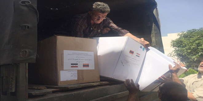 Damasco, SANA– Llegó este viernes a la Diócesis de Damasco para ortodoxos armenios, un lote de 40 toneladas de ayudas alimentarias proporcionados por el pueblo armenio y su gobierno al pueblo sirio.