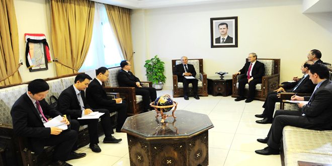 El viceministro de Exteriores, Faisal al Miqdad, se reunió con el enviado especial chino a Siria, Xie Xiaoyan, y a la delegación acompañante.