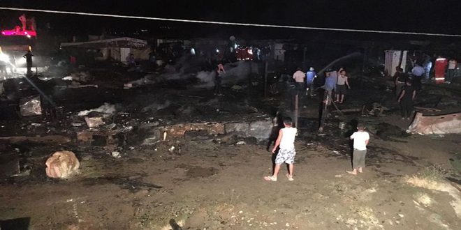 Según informó la agencia nacional de noticias (ANN), El fuego arrasó varias tiendas de campañas del campo, localizado cerca de la población de Bar Elias.