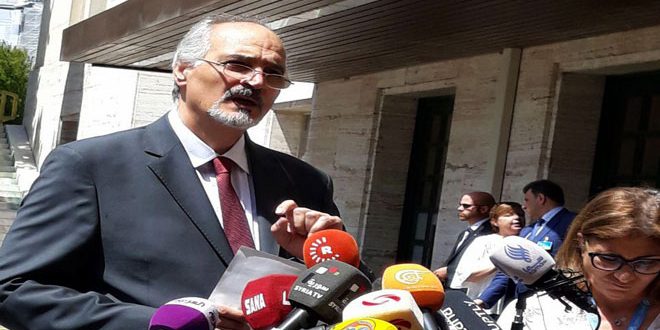 En una conferencia de prensa celebrada después de la reunión, el jefe de la delegación de la República Árabe Siria, encabezada por el Dr. Bashar al-Jaafari, anunció que la delegación pidió a al Enviado Especial de la ONU transmitir el tema de la lucha contra el terrorismo del nivel de una charla teórica en las salas cerradas en Ginebra al Consejo de Seguridad y a la opinión pública internacional.”