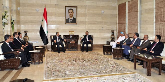 Damasco, SANA– El Ing. Imad Khamis, primer ministro recibió este martes a Said ben Saleh Al Kiyumi, presidente de la Cámara de Comercio e Industria del Sultanato de Omán, donde han sido abordados el fortalecimiento de las relaciones económicas y de inversión entre los dos lados, y el papel del sector privado en esta área.