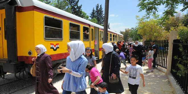 Hammoud Añadió, después de llevar a cabo una gira de inspección del mantenimiento y rehabilitación de la vía férrea entre Damasco y Zabadani… “unos pocos días y el tren reanudará su trabajo después de la finalización de las obras de mantenimiento y rehabilitación”, y agregó que el retorno del servicio de línea contribuirá a la recuperación del turismo en las zonas turísticas de Zabadani y Bloudan.