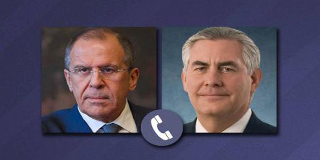 Moscú, SANA– El ministro de Exteriores ruso, Serguéi Lavrov, y el secretario de Estado de EEUU, Rex Tillerson, mantuvieron una conversación telefónica que se centró en la cooperación bilateral encaminada a resolver la crisis siria, dice la nota de la Cancillería rusa.