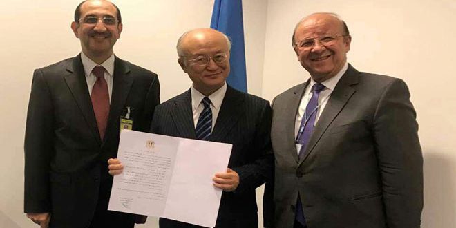 La República Árabe Siria entregó su instrumento de ratificación de la Convención de Seguridad Nuclear a la Agencia Internacional de Energía Atómica, durante una ceremonia en el marco de las labores del 61 periodo de la conferencia general de la Agencia Internacional celebrada actualmente en la capital austriaca.