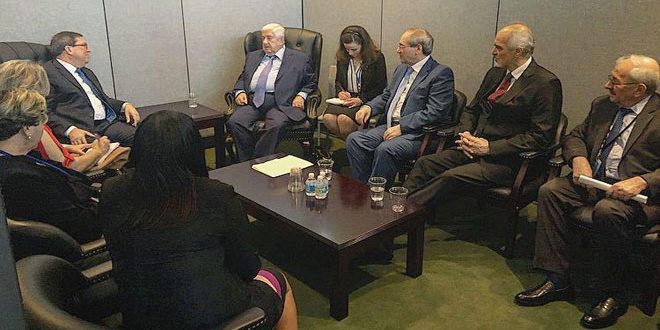 El ministro de Exteriores Walid al Moallem se reunió con su homólogo venezolano Jorge Arreaza, y cubano Bruno Rodríguez Parrilla al margen de las reuniones de la Asamblea General de Naciones Unidas.