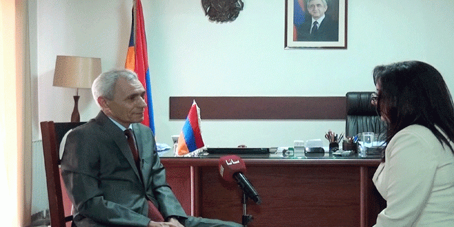 Las relaciones bilaterales sirio-armenias han pasado por varias etapas como el intercambio de representaciones diplomáticas, las visitas oficiales y el diálogo político por el bien de los intereses de ambos países y las cuestiones de interés común, esto lo afirmó el embajador armenio en Damasco Dr. Arshak Poladian en una plática para SANA.