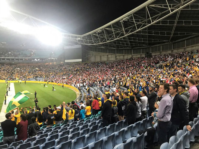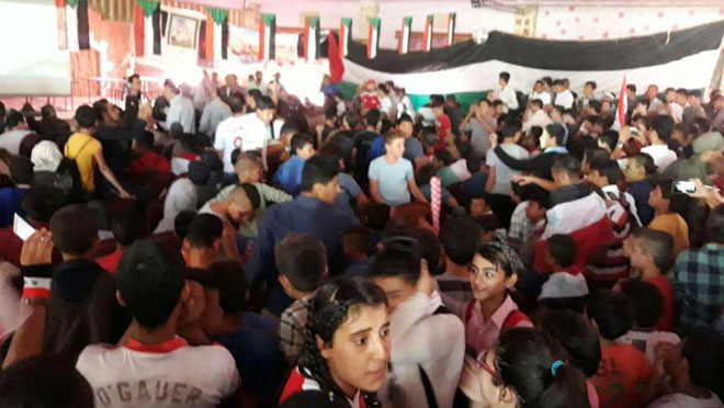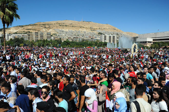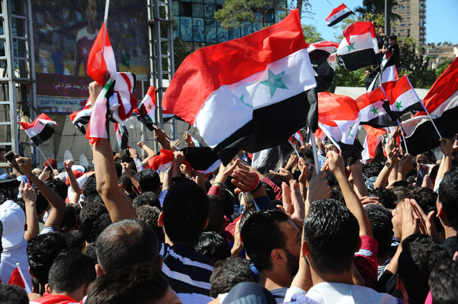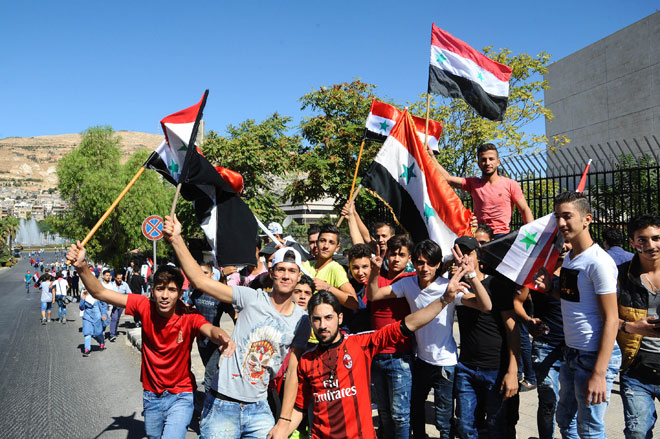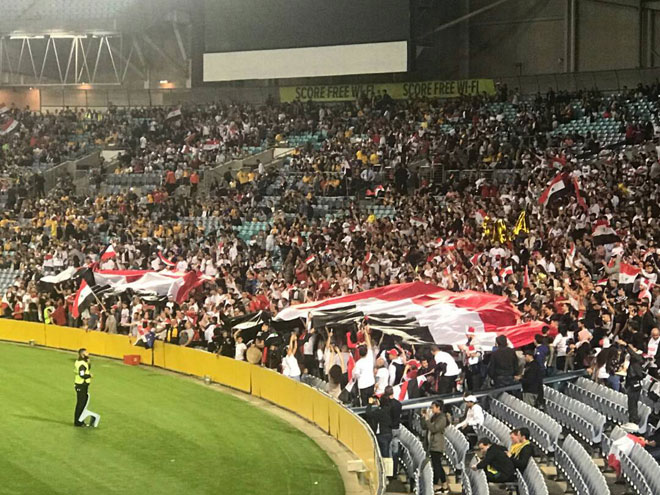 Decenas de miles de sirios se congregaron en las plazas del país para animar a la selección nacional de fútbol que disputó este martes un partido contra su rival australiano.