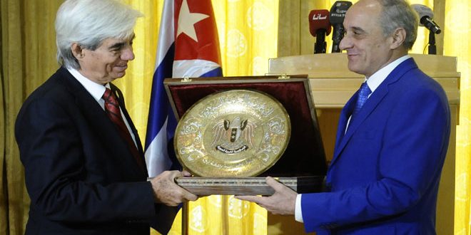 Sosan dijo en una palabra pronunciado en esta ocasión, que el Embajador cubano era muy transparente y claro a la hora de mostrar su simpatía honesta con el sufrimiento de Siria como consecuencia del terrorismo que está sufriendo y su apoyo incondicional a las políticas de Siria de cara a las fuerzas hegemónicas.