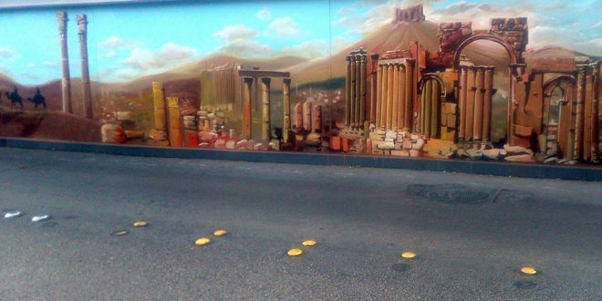 Mansour dijo en declaraciones a SANA: esta obra artística en forma de mural interpreta la relación histórica entre Siria y China al reflejar la Ruta de la Seda que unía entre los dos países amigos a través de caravanas comerciales desde los tiempos de la civilización palmirana, por eso concreté la idea empezando por la Muralla China hasta llegar a la “Novia del Desierto” y fue aprobada por la embajada china”.