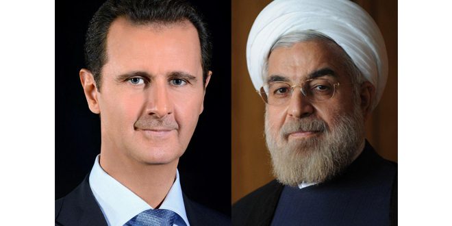 Damasco, SANA / El presidente, Bashar al Assad, realizó este sábado una conversación telefónica con su par iraní, Hassan Rohani, en la cual ambas partes abordaron el desarrollo de la acción antiterrorista y expresaron la determinación de seguir con la misma hasta acabar con todas las organizaciones terroristas en el territorio sirio.