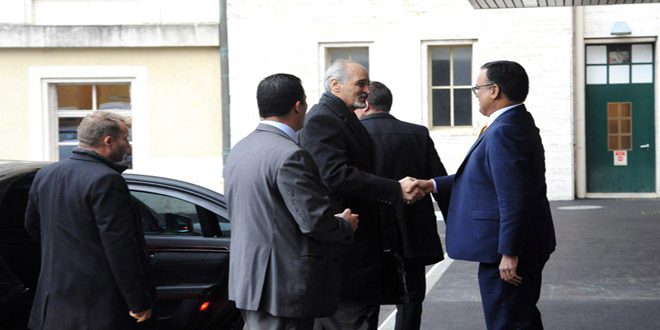 La delegación la República Árabe Siria, encabezada por el Dr. Bashar al-Jafari, ha llegado a la sede da la ONU en Ginebra, para celebrar una segunda sesión con el enviado especial para Siria Staffan De Mistura en el marco de la octava ronda del diálogo sirio- sirio.