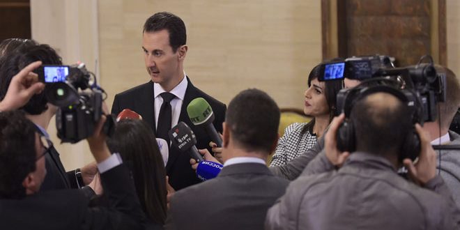 Declaración del presidente Al Assad a medios informativos después de recibir a una delegación gubernamental y económica rusa