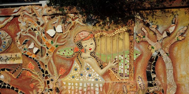 Como expresión de amor a la patria y para pintar sonrisas en los rostros de la gente, el grupo de artistas “Ritmo de la Vida” está realizando un mural artístico en el muro de la escuela de Dar Al-Salam en el centro de Damasco.