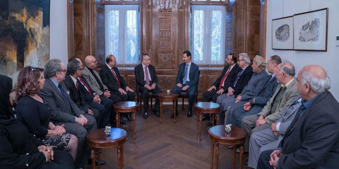 Damasco, SANA– El presidente, Bashar Al-Assad, recibió este lunes a los presidentes de las delegaciones participantes en la reunión de la Secretaría General de la Federación General de los Autores y Escritores Árabes.