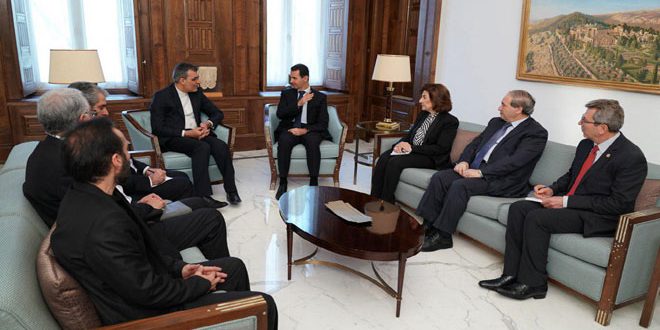 El presidente Bashar Al-Assad ha recibido hoy a Husien Yaberi Ansari, Asistente Especial del Ministro de Asuntos Exteriores de Irán para Asuntos Políticos, y la delegación que lo acompaña.