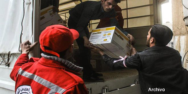 Según la fuente, este convoy viene dentro del plan mensual para entregar ayuda humanitaria, conforme a un acuerdo con el Comité supremo de Socorro en Siria.