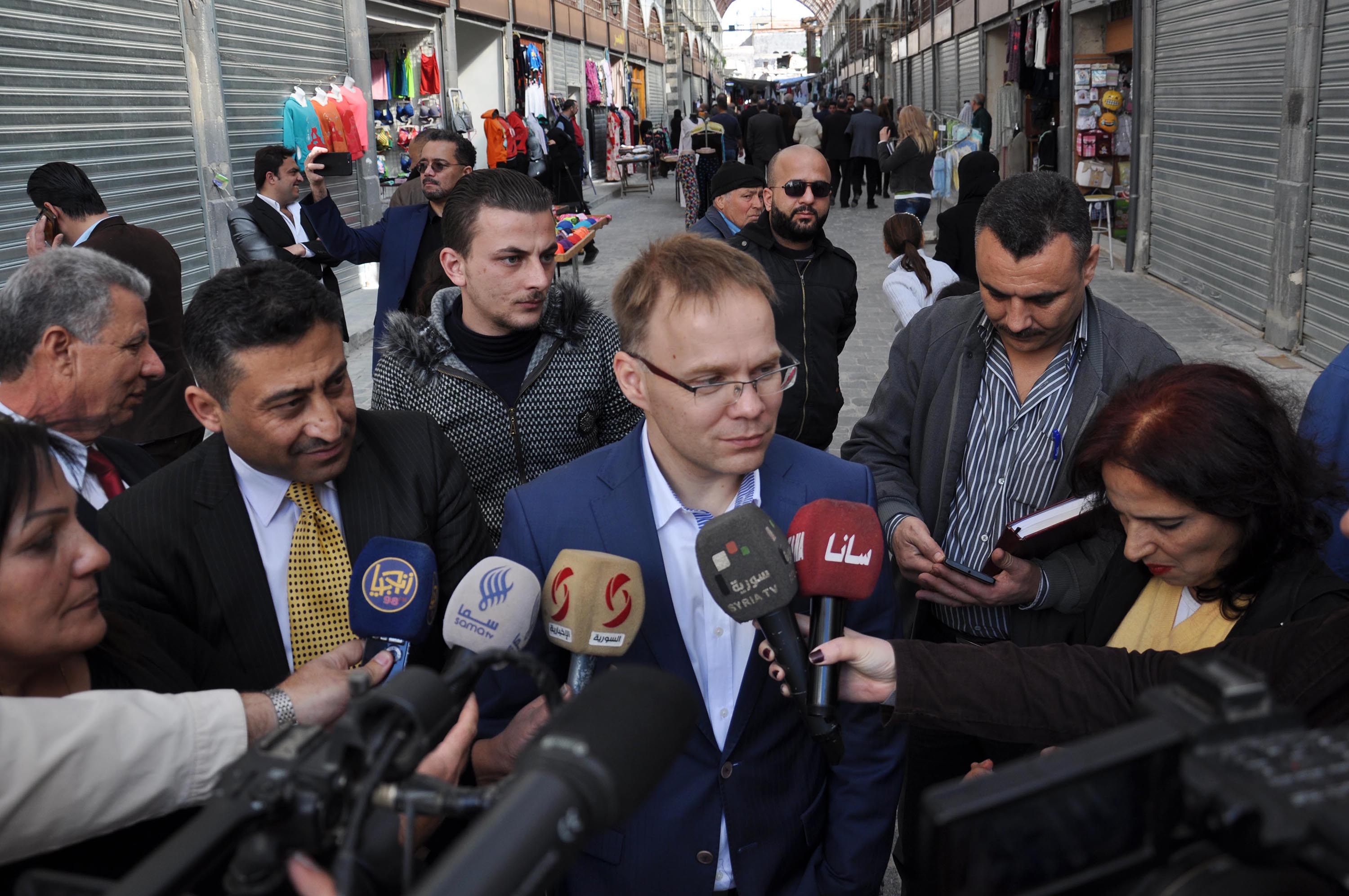 Por su parte, el jefe de la delegación, Kristian Blex, denunció los actos terroristas contra los civiles y el patrimonio cultural e histórico de Siria, sobre todo en la ciudad de Palmira, que es un patrimonio de toda la humanidad.