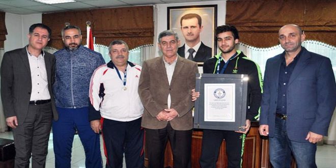 08/03/2018 Damasco-SANA El jugador sirio de Taekwondo Abdallah Sqati ha logrado entrar en el Libro Guinness de los récords, después de haber realizado 52 flexiones en un minuto sobre dos dedos. Y.K. 2018-03-08 admin