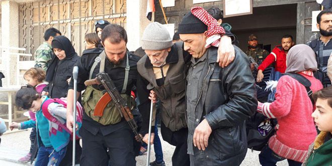 La reportera de SANA informó que decenas de civiles en su mayoría mujeres, niños y ancianos llegaron en la mañana de hoy a través del corredor seguro al Campo Wafidin.