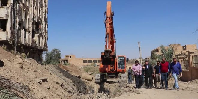 Los equipos técnicos en la provincia de Deir Ezzor continúan su trabajo en quitar los escombros, abrir las calles, y supervisar la red de agua potable y alcantarillado.