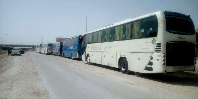 El reportero de SANA al corredor de Erbín mencionó que grandes autobuses entran sucesivamente a la zona de agrupamiento a través del corredor de Erbin para sacar a los terroristas y sus familias renuentes a la reconciliación hacia la provincia de Idleb.