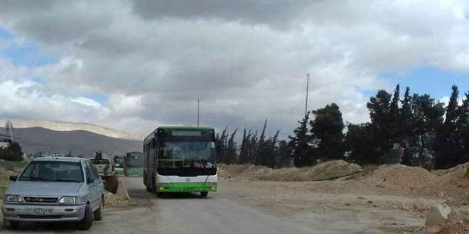 El corresponsal de SANA que se encuentra en el corredor humanitario de Erbin dijo que los autobuses están entrando consecutivamente al área asignada a través del corredor Erbin en un paso hacia el centro de agrupación en la ciudad de Erbin para evacuar a los terroristas y sus familias.
