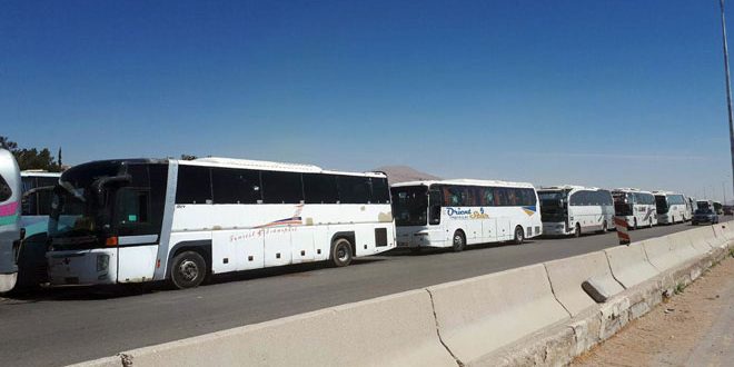 Una fuente militar informó que una caravana de 24 autobuses que trasladan a 1.198 terroristas y miembros de sus familias, salió la noche del martes hacia Jarablus, bajo la supervisión de la Media Luna Roja Árabe Siria.