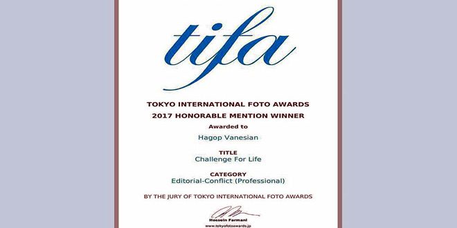 El expatriado sirio y fotógrafo documentalista Jacob Wanisian ha ganado el premio de honor por la categoría “liberación/Guerra/conflicto” en el Concurso Fotográfico Internacional de Tokio gracias a su cuadro titulado “Desafío de vida”.